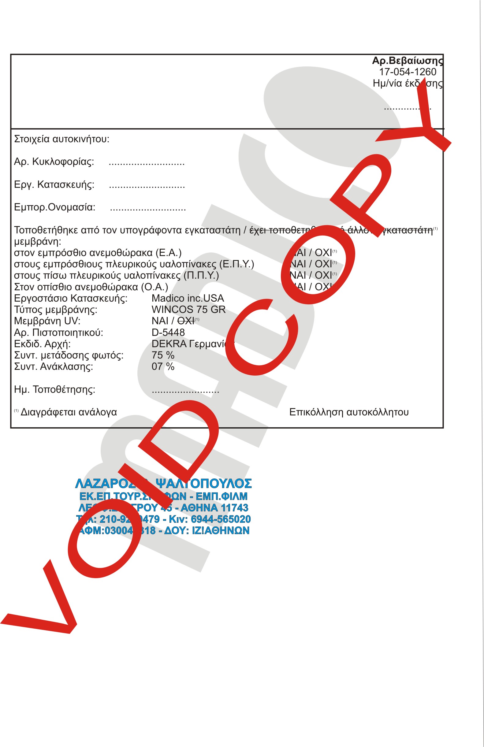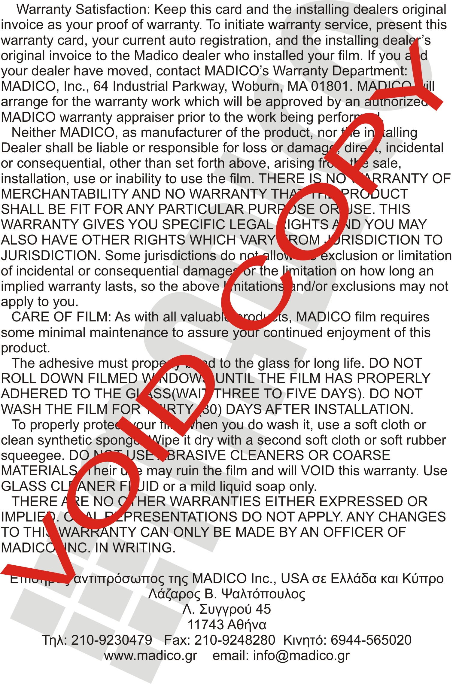 Επίσης για όλες τις μεμβράνες αυτοκινήτων της Madico Inc USA